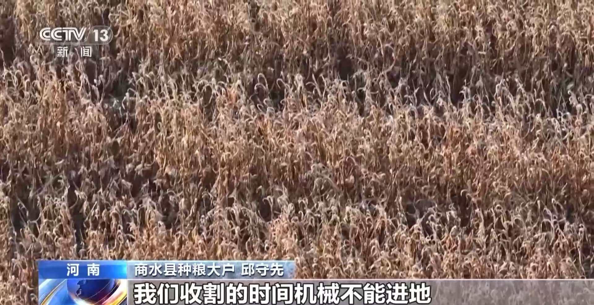 商水县粮食主产区邱守贤:我们收割的时候,机械不能进田里。许多农民在地里手工折断玉米棒子,运到田间,然后用卡车运回家。